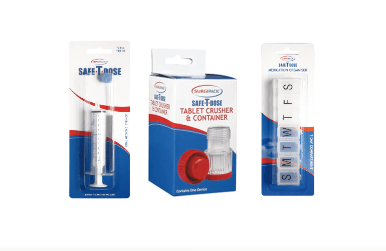 The SurgiPack Safe-T-Dose range includes products like weekly organisers, which are convenient when travelling or on the go. It also includes products such as tablet crushers, which can make taking medicines or supplements more accessible for children, people with disabilities and the elderly.